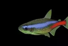 霓虹灯鱼又被称为红绿灯鱼、红莲灯鱼。鱼纲,脂鲤科。原产亚马孙河上游。体长3~4厘米,体形较细,色泽美丽,体上部的绿线,因光线角度不同,有时显出蓝色,与体下部的红线极为协调,又与腹部全红的新红绿灯鱼〔…全部>>