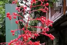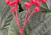赪桐 Sweet)是唇形科、大青属灌木,高1-4米,叶片圆心形,顶端尖或渐尖,基部心形,边缘有疏短尖齿,表面疏生伏毛,二歧聚伞花序组成顶生,大而开展的圆锥花序,花序的最后侧枝呈总状花序,花萼红色,…全部>>