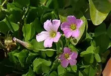 红花酢浆草别名铜锤草、大酸味草、幸运草等,是酢浆草科酢浆草属的多年生直立草本植物。其无地上茎,地下部有球状鳞茎;叶基生,叶柄长5~30cm或更长,被毛;花瓣5,倒心形,淡紫色至紫红色,基部颜色较深。…全部>>