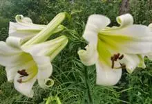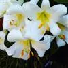 麝香百合:在中国台湾亦称铁炮百合。鳞茎球形或近球形,高2.5-5厘米;鳞片白色。茎高45-90厘米,绿色,基部为淡红色。叶散生,披针形或矩圆状披针形,两面无毛。花单生或2-3朵;花喇叭形,白色,筒外…全部>>