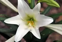 麝香百合:在中国台湾亦称铁炮百合。鳞茎球形或近球形,高2.5-5厘米;鳞片白色。茎高45-90厘米,绿色,基部为淡红色。叶散生,披针形或矩圆状披针形,两面无毛。花单生或2-3朵;花喇叭形,白色,筒外…全部>>