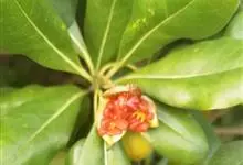 海桐 W. T. Aiton)是海桐科海桐属常绿灌木或小乔木;嫩枝被褐色柔毛;叶聚生于枝顶,浓密且有光泽;伞形花序顶生,花为白色,气味芳香;蒴果呈球形,三瓣裂开,红色;花期3-5月,果熟期9-10月。…全部>>