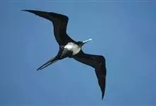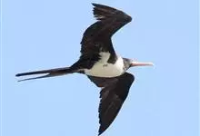 军舰鸟是鹈形目军舰鸟科军舰鸟属鸟类的通称,又称军人鸟。身体较小,腿又短又细,长有钩状嘴;翅膀细长,有很长的叉形尾巴。雄鸟体羽全黑,雌鸟大多数背部、头部和腹部为略带黑色的褐色,而胸部和腋距为白色。…全部>>