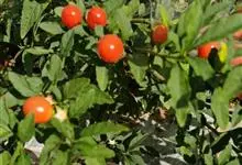 珊瑚樱是茄科茄属植物。株高达2米;植株无毛;叶窄长圆形或披针形,长1-6厘米,基部窄楔形下延,全缘或波状,侧脉4-7对;叶柄长2-5毫米;花单生,稀双生或成短总状花序与叶对生或腋外生,…全部>>
