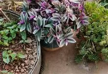 吊竹梅是鸭跖草科紫露草属的多年生草本植物;茎半肉质,柔弱披散至悬垂;叶椭圆形至长圆形,无柄,先端急尖至渐尖,基部鞘状抱茎,叶面紫绿色而杂有银白色,叶背紫色,全缘;花聚生于顶生叶状苞内,…全部>>