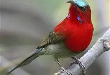 黄腰太阳鸟共有16个亚种,小型鸟类,体长10-15厘米。嘴细长而向下弯曲,雄鸟额和头顶前部金属绿色,头顶后部橄榄褐色。其余头、颈、背、肩、颏、喉、胸以及翅上中覆羽和小覆羽概为红色,腰黄色,…全部>>