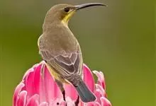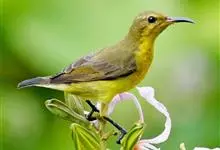 纹背捕蛛鸟:为太阳鸟科捕蛛鸟属的鸟类。是太阳鸟科中体型较大的一种,体重25-45克,体长160-210毫米。嘴粗长而尖且向下弯曲。上体橄榄黄色具黑色中央斑纹。下体淡黄白色满布黑色纵纹,尾具黑色次端斑。…全部>>
