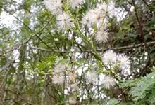 光荚含羞草 Kuntze)是豆科,含羞草属落叶灌木,高可达6米;小枝无刺,二回羽状复叶,叶轴无刺,被短柔毛,小叶片线形,革质,先端具小尖头,中脉略偏上缘。头状花序球形;花白色;花萼极小;花瓣长圆形,…全部>>