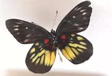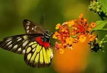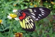 报喜斑粉蝶是粉蝶科斑粉蝶属的一种动物,又名红肩粉蝶、藤粉蝶等。幼虫群集性很强,从同一卵块孵化出的幼虫,幼龄期全部群集在一起取食,高龄幼虫常分散成小群。幼虫群集危害叶片,造成秃枝,严重者可将树吃成光杆,…全部>>