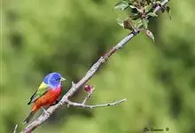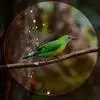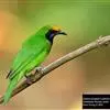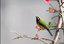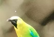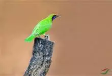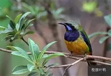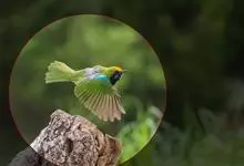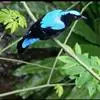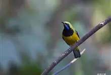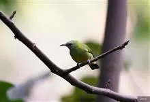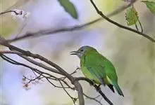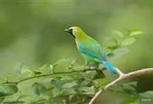 蓝翅叶鹎:小型鸟类,体长15-18厘米。雄鸟通体草绿色,尾蓝绿色,肩和翅亮蓝 色,胸缀有黄色,颏、喉黑色。雌鸟颏,喉蓝绿色。栖息在海拔1500米以下的常绿阔叶林、次生林和林缘疏林灌丛中。…全部>>