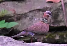 珠颈斑鸠,别名花斑鸠、珍珠鸠、花脖斑鸠、鸪鹪,是鸠鸽科副斑鸠属鸟类。体型中等,体长27~34cm,体重120~205g,雌鸟和雄鸟羽色相似,但雌鸟不如雄鸟羽色亮泽。珠颈斑鸠前额至头顶羽色稍淡,…全部>>