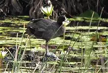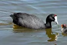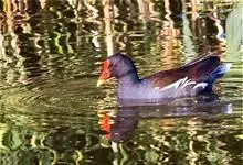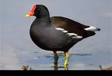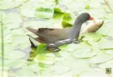 黑水鸡:是鹤形目、秧鸡科的鸟类,共有12个亚种。中型涉禽,体长24-35厘米。嘴长度适中,鼻孔狭长;头具额甲,后缘圆钝;嘴和额甲色彩鲜艳。翅圆形,第2枚初级飞羽最长,或第2枚和第3枚初级飞羽等长,…全部>>