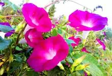 五爪金龙 Sweet),旋花科番薯属多年生缠绕草本植物。茎细长,有细棱;叶片为掌状;花冠紫红色、紫色或淡红色、偶有白色,漏斗状;蒴果近球形。花期5~12月。五爪金龙的叶子类似掌状,有5至7个裂痕,…全部>>