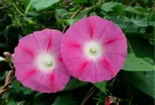 圆叶牵牛 Roth)是旋花科,番薯属一年生缠绕草本植物,叶片圆心形或宽卵状心形,基部圆,心形,顶端锐尖、骤尖或渐尖,两面疏或密被刚伏毛;花腋生,着生于花序梗顶端成伞形聚伞花序,花序梗比叶柄短或近等长,…全部>>
