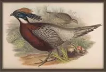 血雉雉科血雉属鸟类,别名血鸡、松花鸡,血雉的雄鸟大覆羽、尾下覆羽、尾上覆羽、脚、头侧、腊膜为红色,故称血雉。其别名甚多,各地皆异。在甘肃,因其胸侧和翅上覆羽沾绿,被称为“绿鸡”;因其羽毛形似柳叶,…全部>>