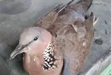 棕斑鸠,是鸽形目鸠鸽科斑鸠属鸟类。整个头和颈淡粉红色,头顶和前额较暗,颊、喉较淡,前颈基部两侧羽毛黑色具宽阔的棕色端斑,使前颈两侧形成黑色斑点状的黑斑。…全部>>