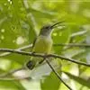 长嘴捕蛛鸟,小型鸟类,体长14-16厘米。嘴长而尖向下弯曲。上体橄榄绿色,眼先和短眉灰白色,两翅和尾暗褐色,外翈羽缘橄榄绿色,羽端灰褐色,自嘴基沿喉侧有一黑色纵纹。颏、喉灰白色,其余下体鲜黄色,…全部>>