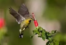 黄腹花蜜鸟是雀形目太阳鸟科花蜜鸟属鸟类。体型较小、喙略短而弯、腹部黄色。雄鸟繁殖季节颏及胸黑紫色并泛金属光泽,具有绯红色及灰色胸带,将上腹部黑色斑与前胸隔开,肩斑为橙黄色丝质羽,上体橄榄绿色,…全部>>