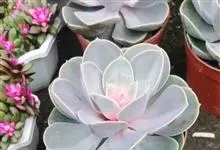 紫珍珠是景天科石莲花属的多年生肉质草本植物。植株中小型;叶片肉质,匙形,呈莲座状紧密排列;叶片粉紫色,叶缘呈粉白色,光照充足时颜色亮丽,不足时叶色会呈现深绿色或灰绿色,叶面光滑,被轻微白粉,…全部>>