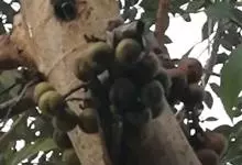 大果榕是桑科榕属的小乔木,株高可达10米;幼枝被柔毛;叶互生,宽卵状心形或近圆形;雄花无梗、匙形、花丝长,雌花生于雌株榕果内,子房白色;榕果簇生于树干基部或老茎短枝上、扁球形或陀螺形,…全部>>