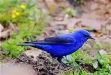 蓝大翅鸲是鹟科、大翅鸲属小型鸟类,体长19-21厘米。两翅尖长。雄鸟通体鲜紫蓝色具金属光泽。两翅和尾黑色。雌鸟上体灰褐色,头、颈、翕具棕白色纵纹,翅上有白色翅斑。虹膜暗褐色,嘴、脚黑色。…全部>>