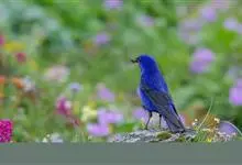 蓝大翅鸲是鹟科、大翅鸲属小型鸟类,体长19-21厘米。两翅尖长。雄鸟通体鲜紫蓝色具金属光泽。两翅和尾黑色。雌鸟上体灰褐色,头、颈、翕具棕白色纵纹,翅上有白色翅斑。虹膜暗褐色,嘴、脚黑色。…全部>>