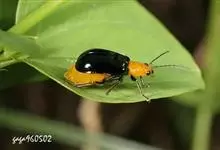 黄守瓜又名黄足黄守瓜,俗称黄莹、瓜莹、瓜守、瓜叶虫、瓜黄叶甲、瓜娃子等,是鞘翅目叶甲科守瓜属动物。长椭圆形,体长8-9毫米,身体除中胸、后胸及腹部腹面为黑色外,其余均为黄色或橙红色,且有光泽;复眼圆形,…全部>>