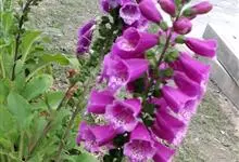 毛地黄是车前科、毛地黄属一年生或多年生草本植物。株高0.5—1米,茎直立,少分枝,全株被灰白色短柔毛和腺毛叶基生,呈莲座状,卵圆形或卵状披针形。顶生总状花序,花冠钟状,紫红色,内面有浅白斑点。菊果卵形。…全部>>