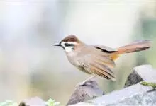 白颊噪鹛是雀形目噪鹛科噪鹛属鸟类,又称土画眉、小画眉、小噪鹃。成鸟额至头顶栗褐色,长眉纹、眼先和颊纹棕白色,眼后至耳羽深褐色,…全部>>