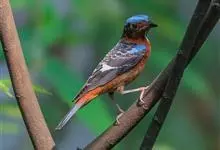 蓝头矶鸫为鹟科矶鸫属的鸟类,是一种候鸟,俗名臭皮翠、白喉叽鸫、白喉石鸫、葫芦翠、虎皮翠。全长19厘米。自额至后颈及翅上的小覆羽均钴蓝色。腰和尾上覆羽浓栗。内侧飞羽有一白色块斑。喉部中央有一大型白斑。…全部>>