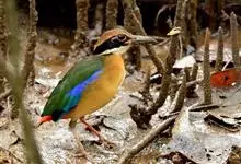 蓝翅八色鸫是雀形目八色鸫科的鸟类。体长17-20厘米,体重类约48-70克,体型圆胖,尾短,腿长,以身体具有红、绿、蓝、白、黑、黄、褐、栗等鲜艳夺目,丰富艳丽的色彩而得名,是很有观赏价值的鸟类。主要…全部>>