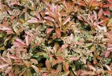 红叶石楠 是蔷薇科,石楠属杂交种,为常绿小乔木或灌木,乔木高可达5米、灌木高可达2米。叶片革质,长圆形至倒卵状、披针形,叶端渐尖,叶基楔形,叶缘有带腺的锯齿,花多而密,复伞房花序,花白色,梨果黄红色,…全部>>