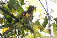 四声杜鹃:是中型鸟类,体长31-34厘米。头顶和后颈暗灰色;头侧浅灰,眼先、颏、喉和上胸等色更浅 ;上体余部和两翅表面深褐色 ;尾与背同色,但近端处具一道宽黑斑。下体自下胸以后均白,…全部>>