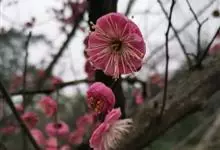 宫粉梅 Rehd.)是蔷薇科、李属植物,梅花品系中真梅系直枝梅类宫粉型,其花复瓣至重瓣,呈或深或浅的红色。落叶乔木,高达10米。树干褐紫色,有纵驳纹,小枝细而无毛,多为绿色。叶广卵形至卵形,…全部>>