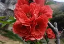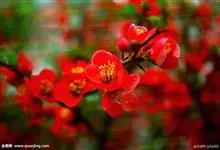 贴梗海棠 Nakai)是蔷薇科、木瓜海棠属植物。落叶灌木,高达2米,枝条直立开展,有刺。叶片卵形至椭圆形,稀长椭圆形,长3-9厘米,宽1.5-5厘米。花先叶开放,3-5朵簇生于二年生老枝上。…全部>>