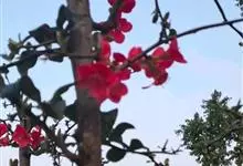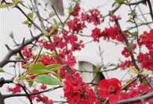 贴梗海棠Nakai)是蔷薇科、木瓜海棠属植物。落叶灌木,高达2米,枝条直立开展,有刺。叶片卵形至椭圆形,稀长椭圆形,长3-9厘米,宽1.5-5厘米。花先叶开放,3-5朵簇生于二年生老枝上。…全部>>