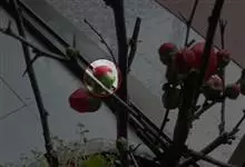 贴梗海棠Nakai)是蔷薇科、木瓜海棠属植物。落叶灌木,高达2米,枝条直立开展,有刺。叶片卵形至椭圆形,稀长椭圆形,长3-9厘米,宽1.5-5厘米。花先叶开放,3-5朵簇生于二年生老枝上。…全部>>