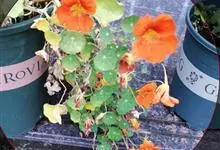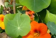旱金莲是旱金莲科旱金莲属蔓生一年生草本植物。叶互生,叶柄向上扭曲,盾状,叶圆形,具波状浅缺刻,下面疏被毛或有乳点;花黄、紫、桔红或杂色,花托杯状,花瓣为圆形,边缘具缺刻;果实为扁球形;花果期6-10月,…全部>>