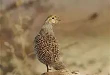 斑翅山鹑,俗称沙半鸡、沙斑鸡,体长250-310毫米,是体形略小的灰褐色鹑类。雄鸟的脸、喉中部及腹部桔黄色,腹中部有一倒“U“字形黑色斑块。与灰山鹑的区别在于胸为黑色而非栗色,喉部桔黄色延至腹部,…全部>>