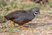 雉鹑:是雉科雉鹑属二种鸟类红喉雉鹑和黄喉雉鹑的统称。体长30-54厘米。上体大都褐色,头顶与两侧深灰,头顶与枕羽中央有黑褐色纵纹。飞羽暗褐色,羽缘具白色和棕色端斑。中央一对尾羽灰褐色具白色端斑,…全部>>