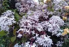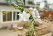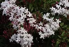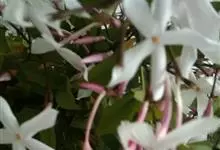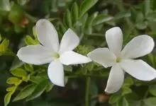 素馨花,木犀科素馨属多年生的攀援灌木植物。攀援灌木,小枝圆柱形,具棱或沟;叶对生,叶轴常具窄翼,小叶片卵形或长卵形;聚伞花序顶生或腋生,花序梗长,苞片线形,花萼无毛,裂片锥状线形,花冠白色,…全部>>