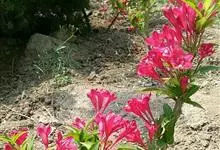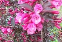 红王子锦带花是忍冬科锦带花属的落叶开张性灌木。株高1 -2米;嫩枝淡红色,老枝灰褐色;单叶对生,呈椭圆形,先端渐尖,叶缘有锯齿,红枝及叶脉具柔毛;花冠漏斗状钟形,花冠筒中部以下变细,聚伞花序,…全部>>