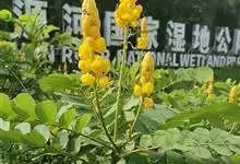 翅荚决明 Roxb.)是豆科决明属灌木植物,高3米。羽状复叶,在叶柄和叶轴上有窄翅;小叶倒卵状长圆形,先端圆钝,基部斜截形;总状花序顶生和腋生;荚果带形,…全部>>