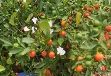珊瑚樱是茄科茄属植物。株高达2米;植株无毛;叶窄长圆形或披针形,长1-6厘米,基部窄楔形下延,全缘或波状,侧脉4-7对;叶柄长2-5毫米;花单生,稀双生或成短总状花序与叶对生或腋外生,…全部>>