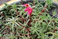大花马齿苋:一年生草本,高10-30厘米。茎平卧或斜升,紫红色,多分枝,节上丛生毛。叶密集枝端,较下的叶不规则互生,叶片细圆柱形,无毛。花单生或数朵簇生枝端,直径2.5-4厘米,…全部>>