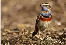 蓝点颏亦称“蓝喉歌鸲”,通称蓝靛颏儿。身体大小和麻雀相似,体长12-13厘米,体重17-18克。头部、上体主要为土褐色。眉纹白色。尾羽黑褐色,基部栗红色。颏部、喉部辉蓝色,下面有黑色横纹。下体白色。…全部>>