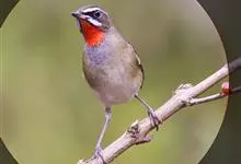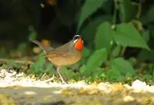 红点颏:是鸟纲、鹟科的鸣禽。又名西伯利亚歌鸲。体长14-17厘米,体重16-27克。雄鸟头部、上体主要为橄榄褐色。眉纹白色。颏部、喉部红色,周围有黑色狭纹。胸部灰色,腹部白色。雌鸟颏部、喉部不呈赤红色,…全部>>
