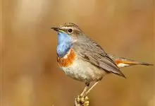 蓝点颏亦称“蓝喉歌鸲”,通称蓝靛颏儿。身体大小和麻雀相似,体长12-13厘米,体重17-18克。头部、上体主要为土褐色。眉纹白色。尾羽黑褐色,基部栗红色。颏部、喉部辉蓝色,下面有黑色横纹。下体白色。…全部>>