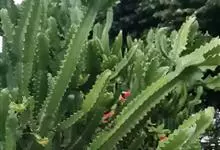 霸王鞭,是大戟科大戟属的多年生肉质灌木,全株含白色乳汁;茎直立,茎基部圆柱形,上部4~5纵棱,边缘波状,外面深绿色;叶互生,上部叶密集,近于簇生,具短柄,其基部有利刺1对;叶片披针形,先端圆,…全部>>