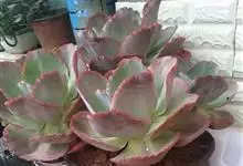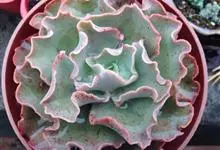 女王花笠,又名扇贝石莲花、女王花舞笠,是景天科拟石莲花属的多肉植物。由美国加利福尼亚州的育种师Dick Wright于1964年培育。特征是呈大波浪状褶皱的红色叶缘和气质高贵的粉紫色调。…全部>>